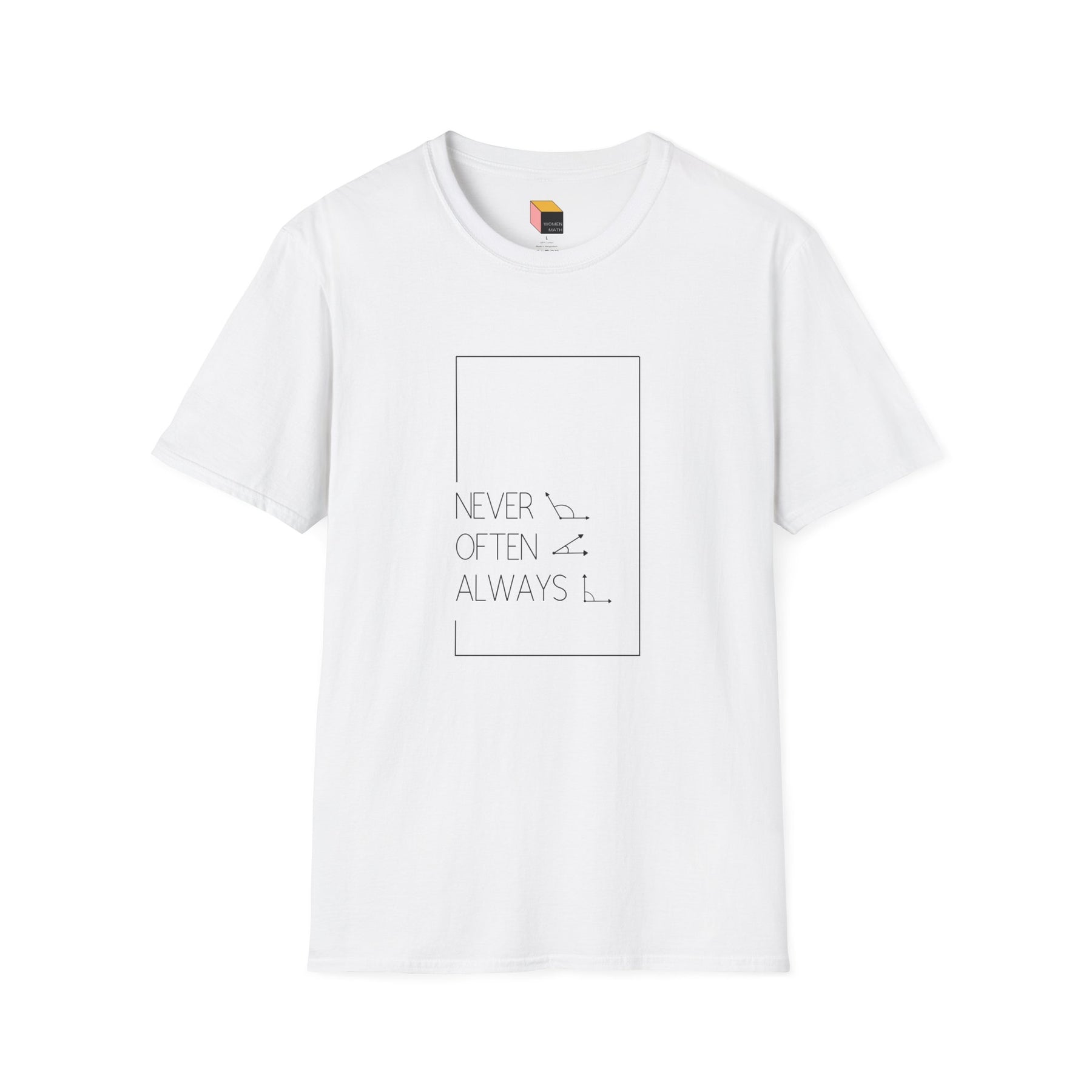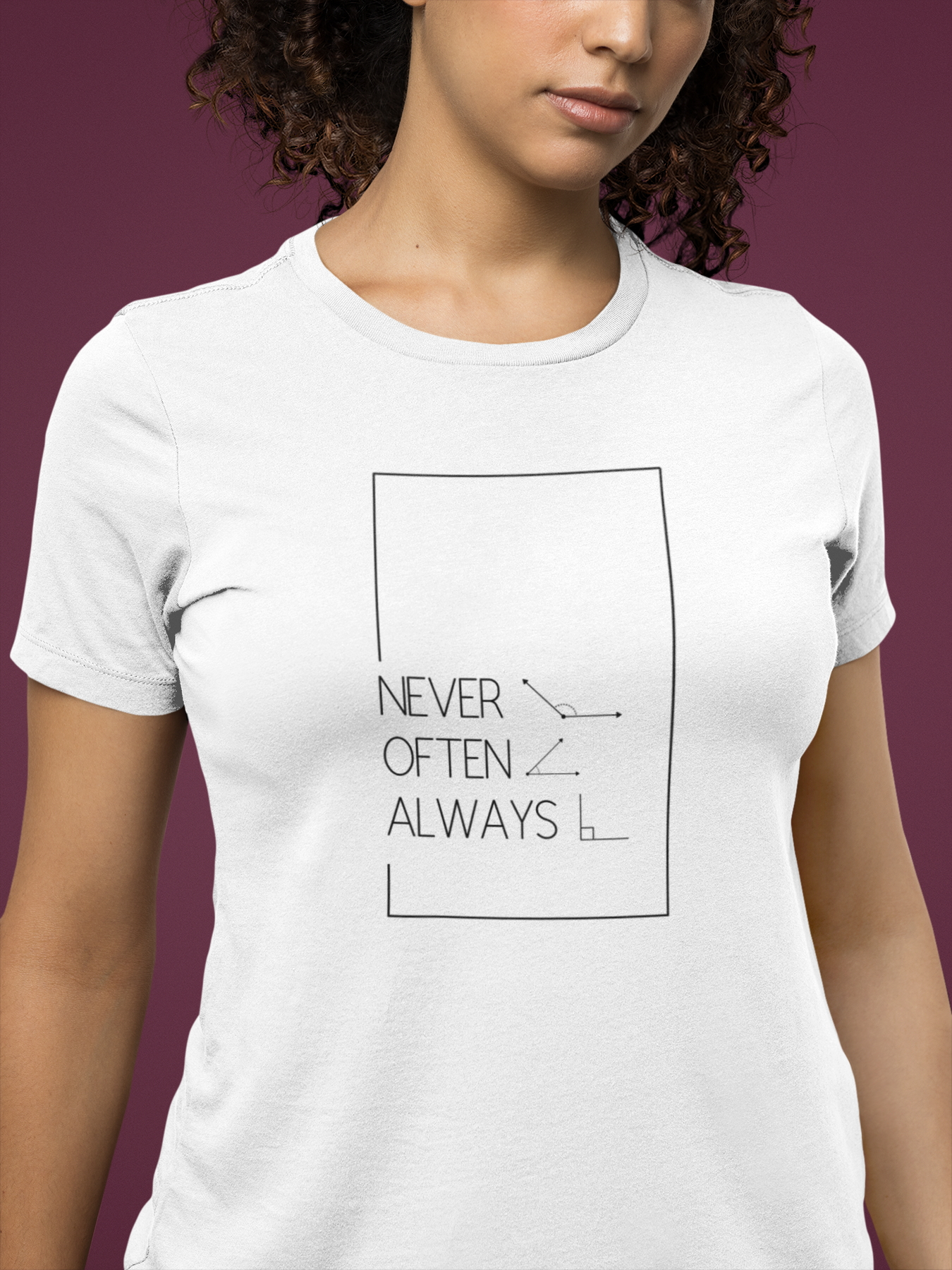 A geometric pun T-Shirt with the phrase 'Rarely Obtuse. Often Acute. Always Right.' printed on it. This T-Shirt gives off a fun and witty vibe, perfect for casual wear or as a statement piece. Ideal for adults looking for a unique addition to their wardrobe. Suitable for everyday wear, casual gatherings, and special occasions like parties and outings.